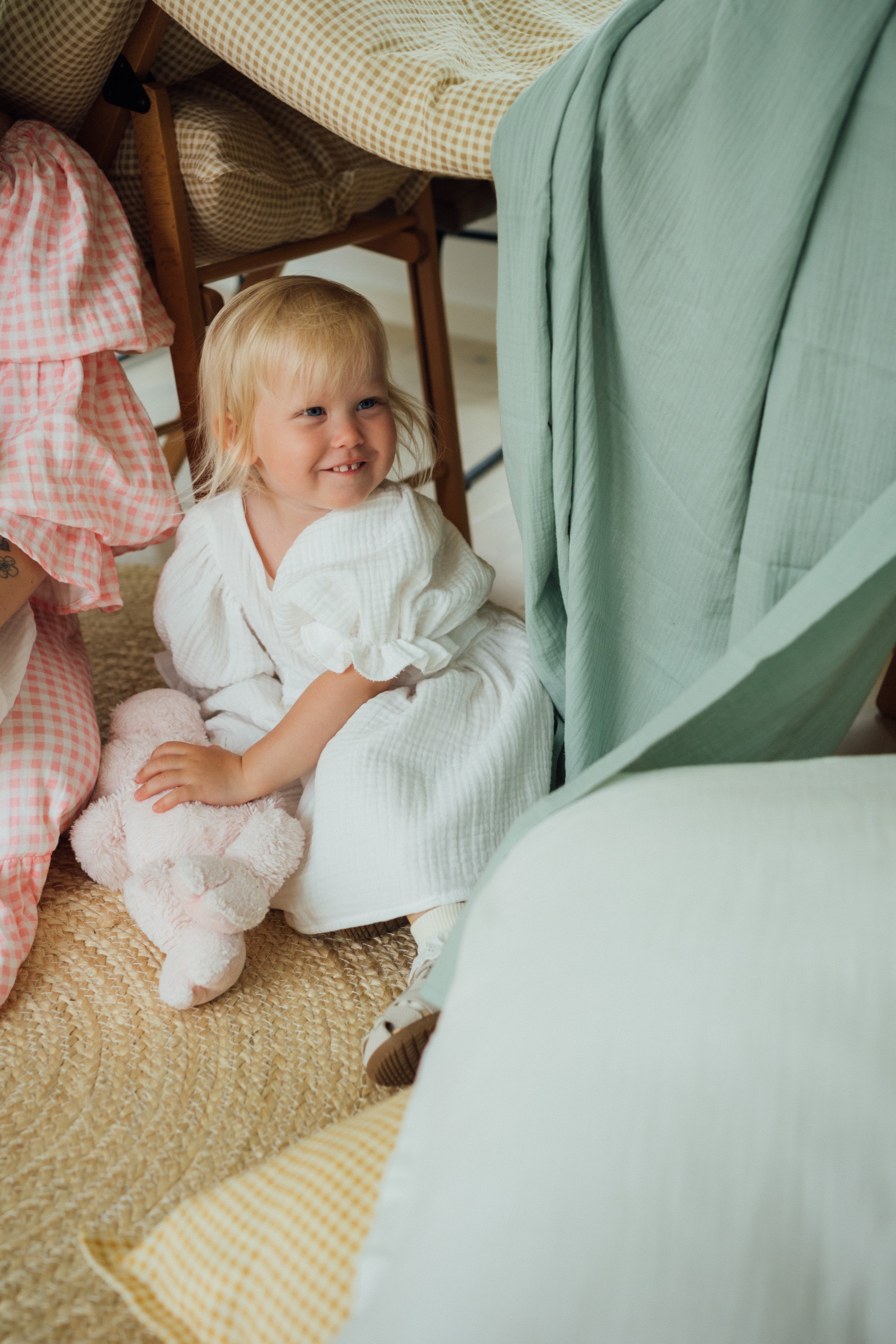 Kerge ja hingav musliinkangas on ideaalne valik kogu perele – nii beebidele kui ka täiskasvanutele. Õhuline kangas tundub naha vastas imeline ega vaja triikimist, vaid on pärast pesemist ja kuivatamist kohe kasutusvalmis.
