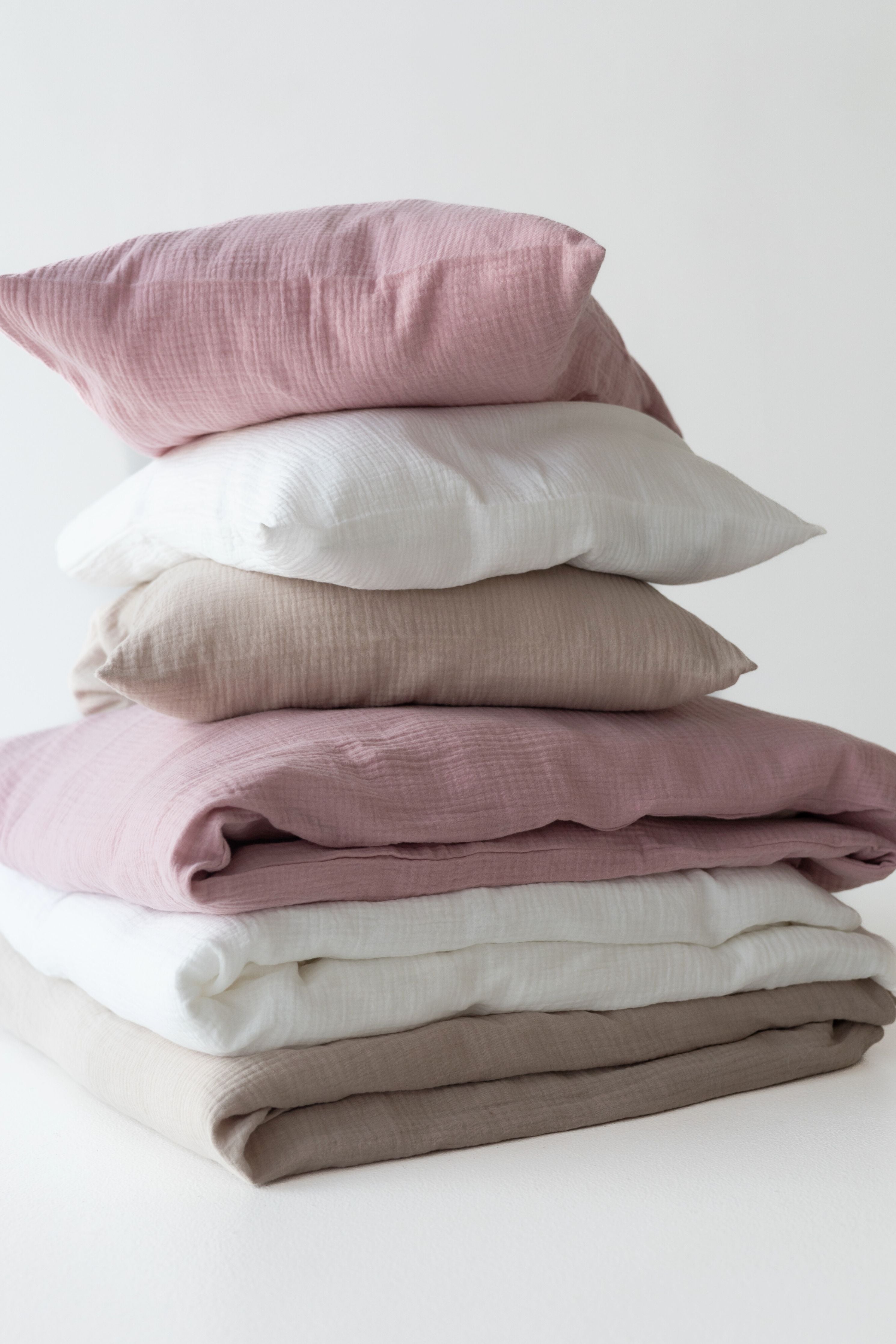 Voodipesu on valmistatud kergelt kortsus musliinkangast, nii et seda on lihtne kasutada vahetult pärast pesemist ja kuivatamist – ei vaja triikimist!